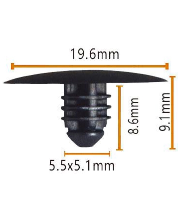 Partea superioară a acestui șurub este proiectată pentru a fi plat, cu un diametru de 19,6 mm și o lungime de 8,6 mm, asigurând o potrivire strânsă cu toate părțile vehiculului. Partea ridicată la mijloc are un diametru de 5,5 mm și 5,1 mm înălțime. Acest design unic nu numai că îmbunătățește efectul de strângere al șurubului, dar face și mai ușor procesul de instalare. Partea inferioară este o bază rotundă plană, cu un diametru de 9,1 mm, ceea ce oferă un suport stabil pentru șurub. Mărimea totală este clar marcată, ceea ce vă este convenabil să vă identificați și să selectați rapid atunci când utilizați.