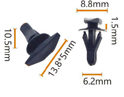 Setul oferă două elemente de fixare în dimensiuni distincte. Această strategie de dimensionare acoperă un spectru mai larg de scenarii de instalare, asigurându -vă că aveți întotdeauna dimensiunea potrivită la îndemână. Ambele elemente de fixare sunt fabricate din plastic negru de înaltă calitate, cu secțiuni centrale ridicate care le îmbunătățesc zona de contact cu corpul vehiculului, îmbunătățind astfel stabilitatea instalării. În plus, acestea sunt echipate cu găuri cu șurub și porțiuni filetate, facilitând fixarea rapidă și fiabilă folosind șuruburi sau șuruburi.